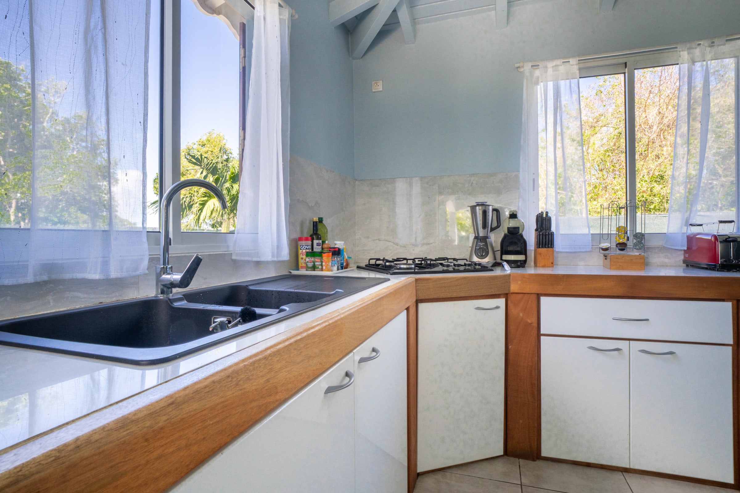 Golf enthusiasts will be delighted by the immediate proximity of the Saint-François International Golf Course. For breathtaking views, don't miss Pointe-des-Châteaux, easily accessible by car. Finally, renowned, idyllic beaches such as Raisins Clairs and Anse à la Gourde await you for moments of pure relaxation.
