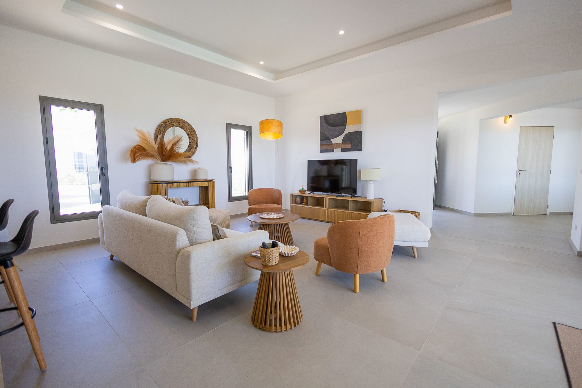 Inside, the villa is just as impressive: a fully equipped high-end kitchen for cooking enthusiasts, a bright and spacious living room perfect for gathering with family or friends, and a modern, carefully designed décor that enhances this exceptional property.