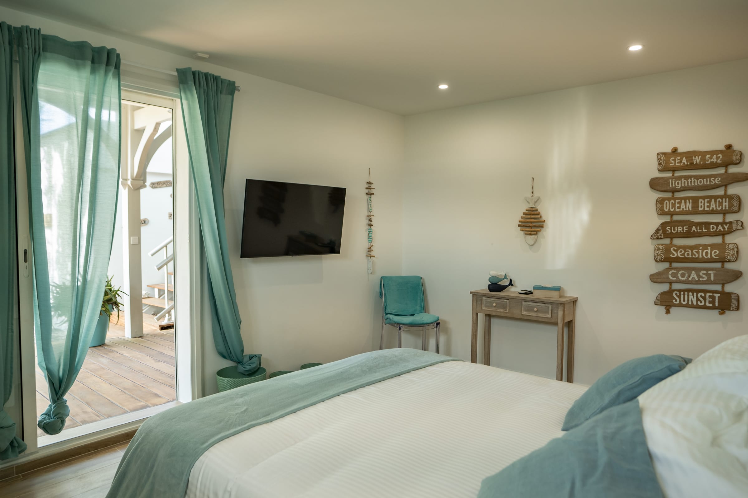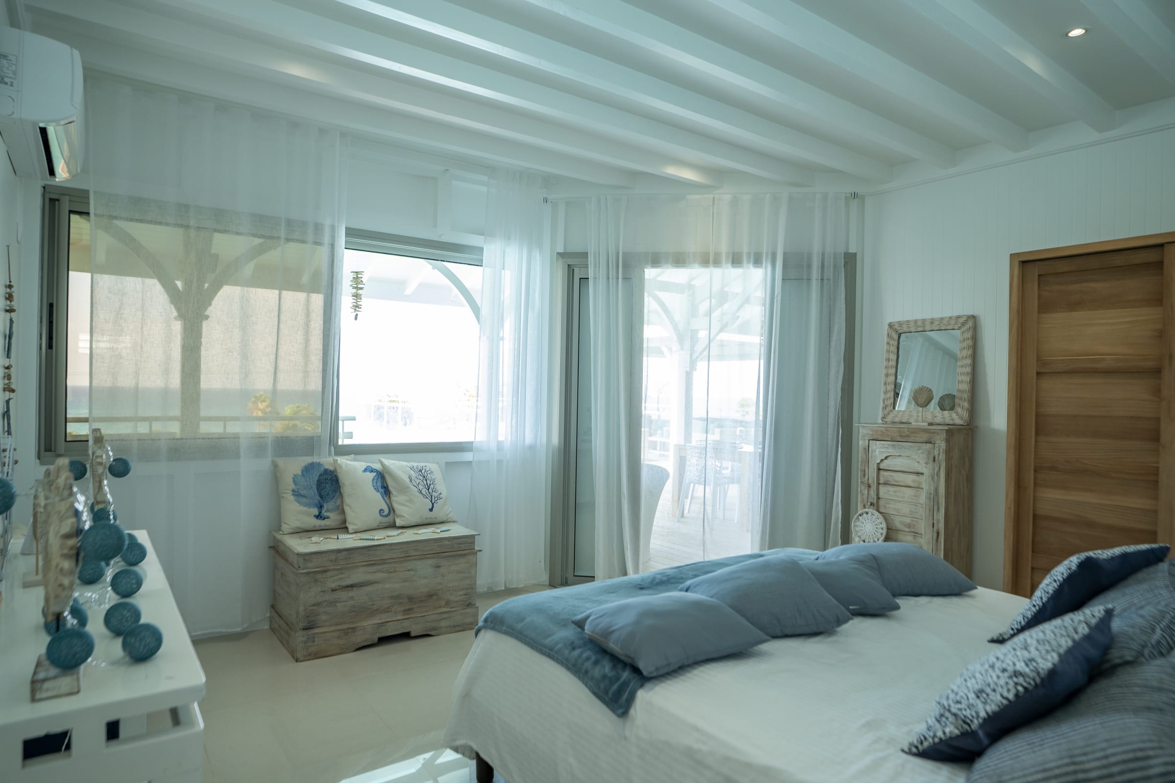 The villa is located in the commune of Sainte Anne, on the eastern part of Guadeloupe called Grande-Terre. At 40 minutes drive from Pointe-à-Pitre airport, it will take you less than 5 minutes to reach the town of SAINT ANNE and find all the conveniences there: Commercial space, Supermarket, Bakery, Pharmacy, Fruit and Vegetable and Spice Market.