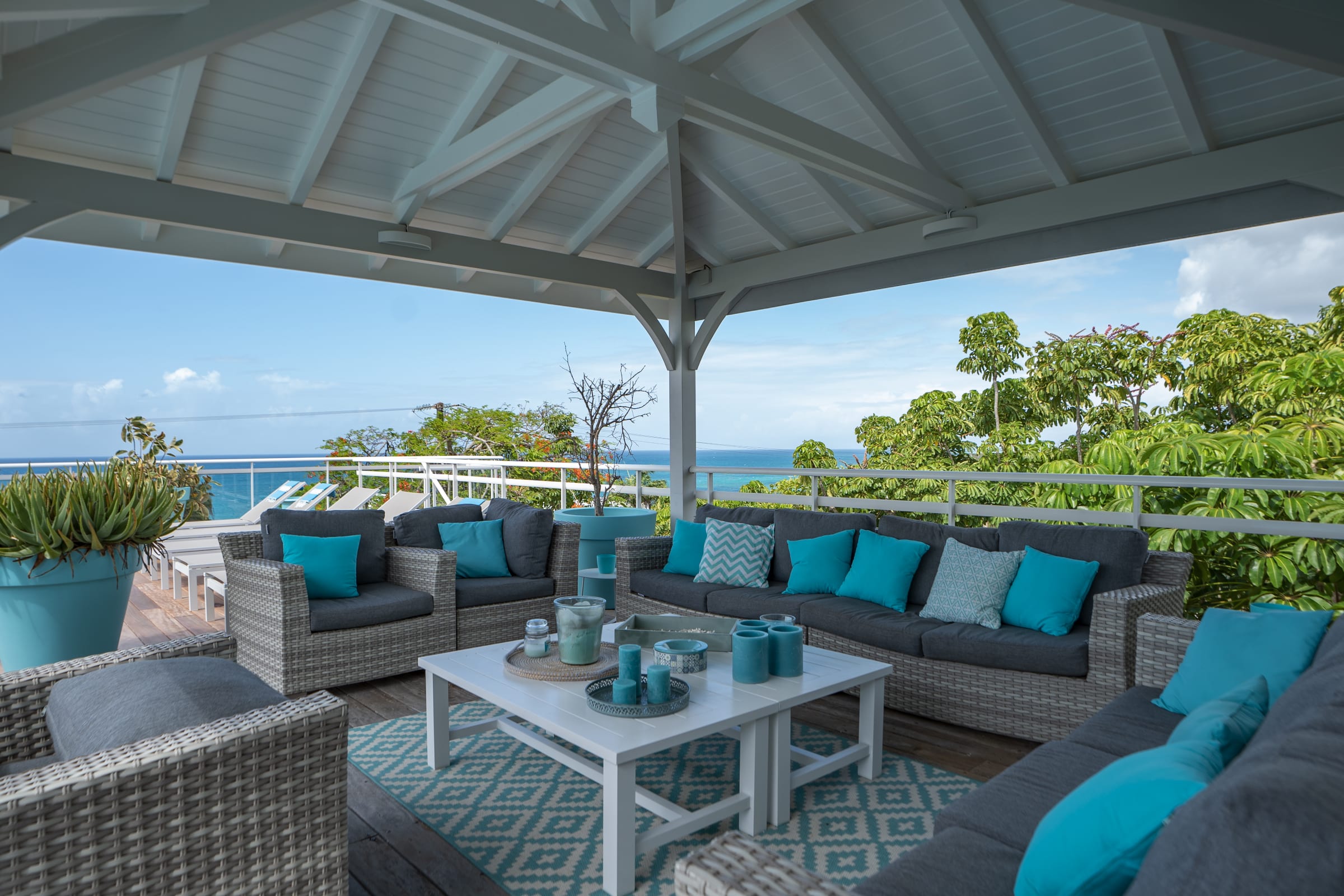 You will appreciate the luxury and the calm of this magnificent villa where everything seems to have been arranged to take advantage of a magnificent 180° sea view on Marie Galante, the Saintes and the Basse-Terre.