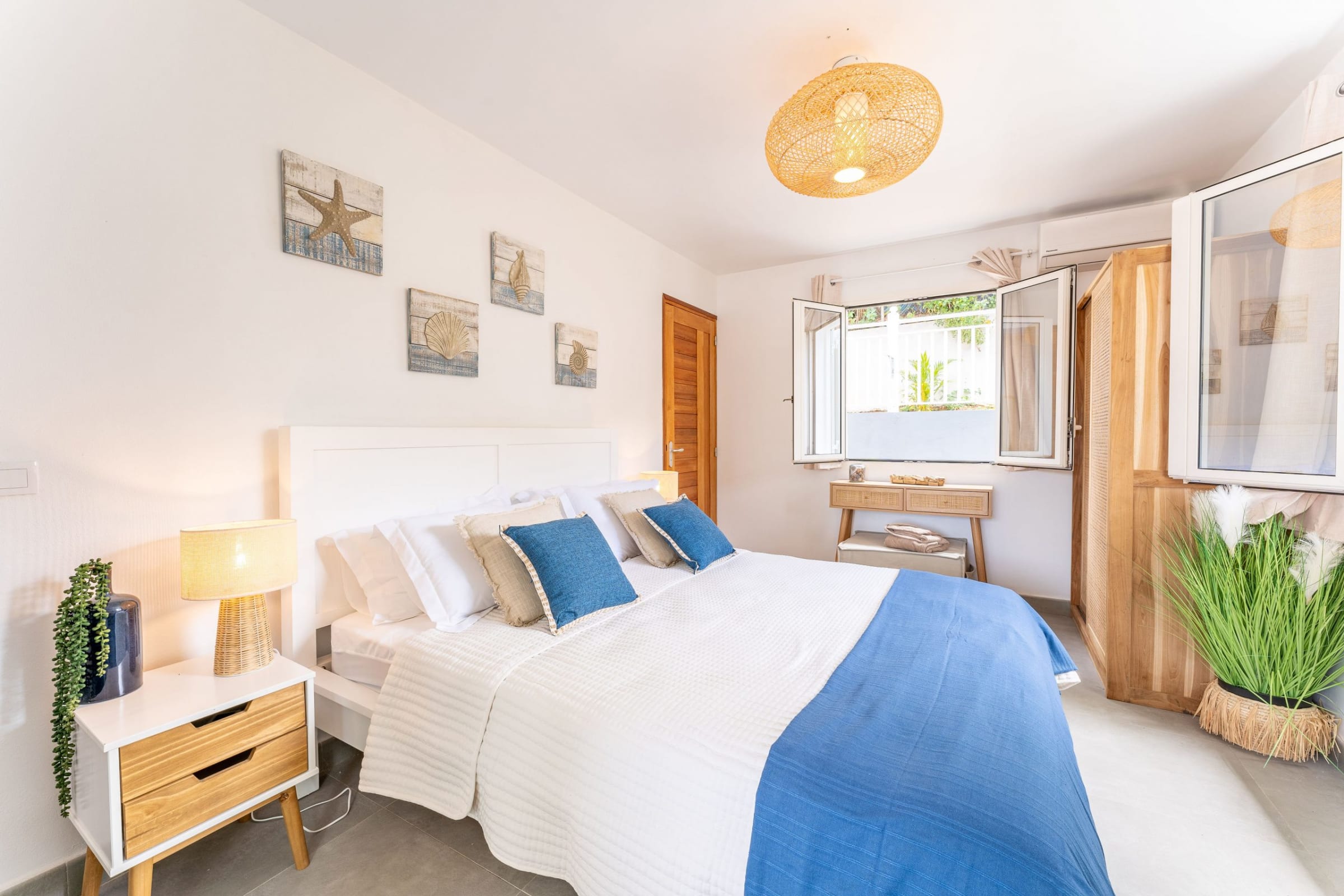 Nestled on the Route de l’Anse Figuier in Terre-de-Haut, on the island of Saintes, Villa Topaze stands like a haven of peace, recently built and bathed in a gentle breeze. Close to shops and restaurants, it offers an ideal refuge for an idyllic stay.