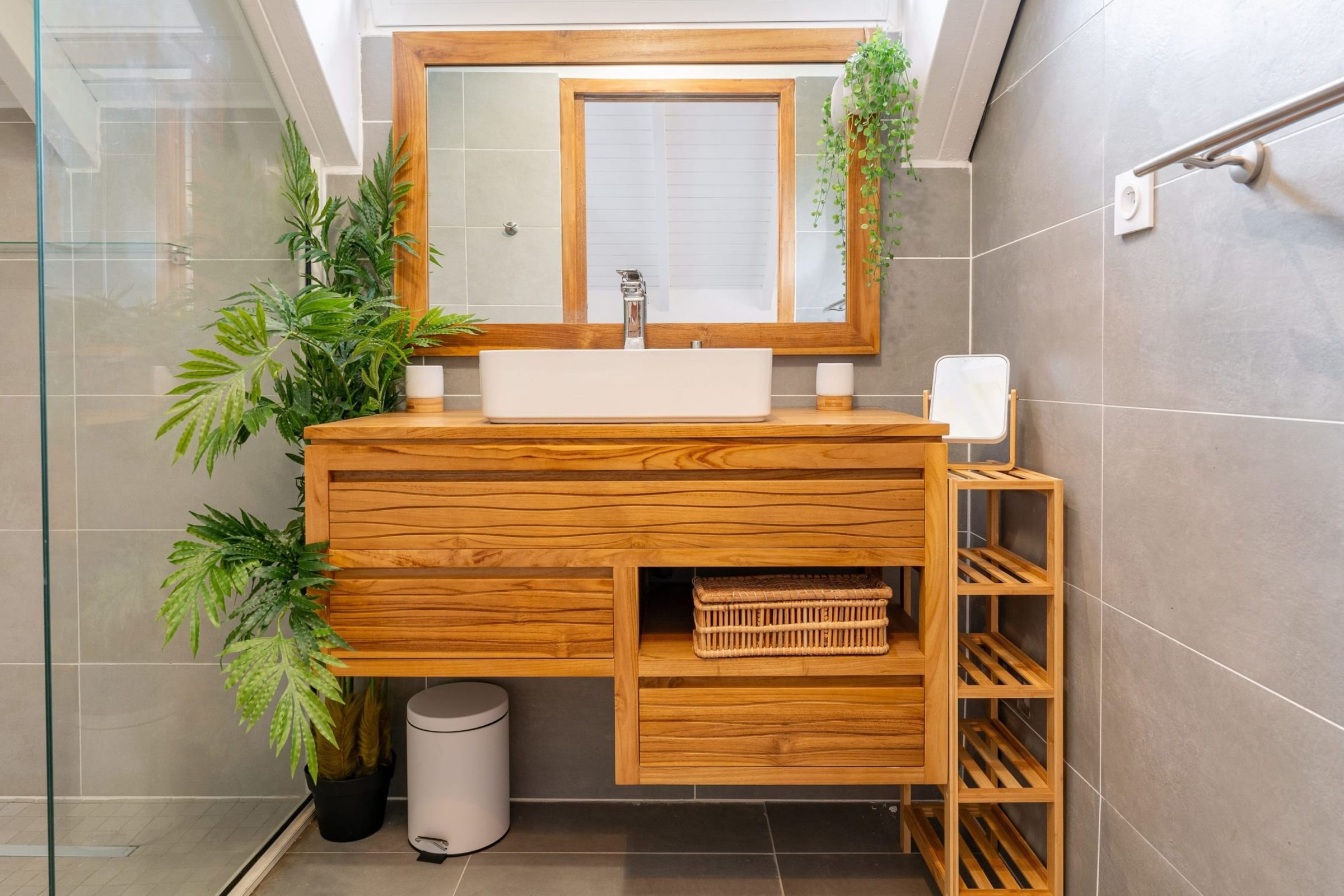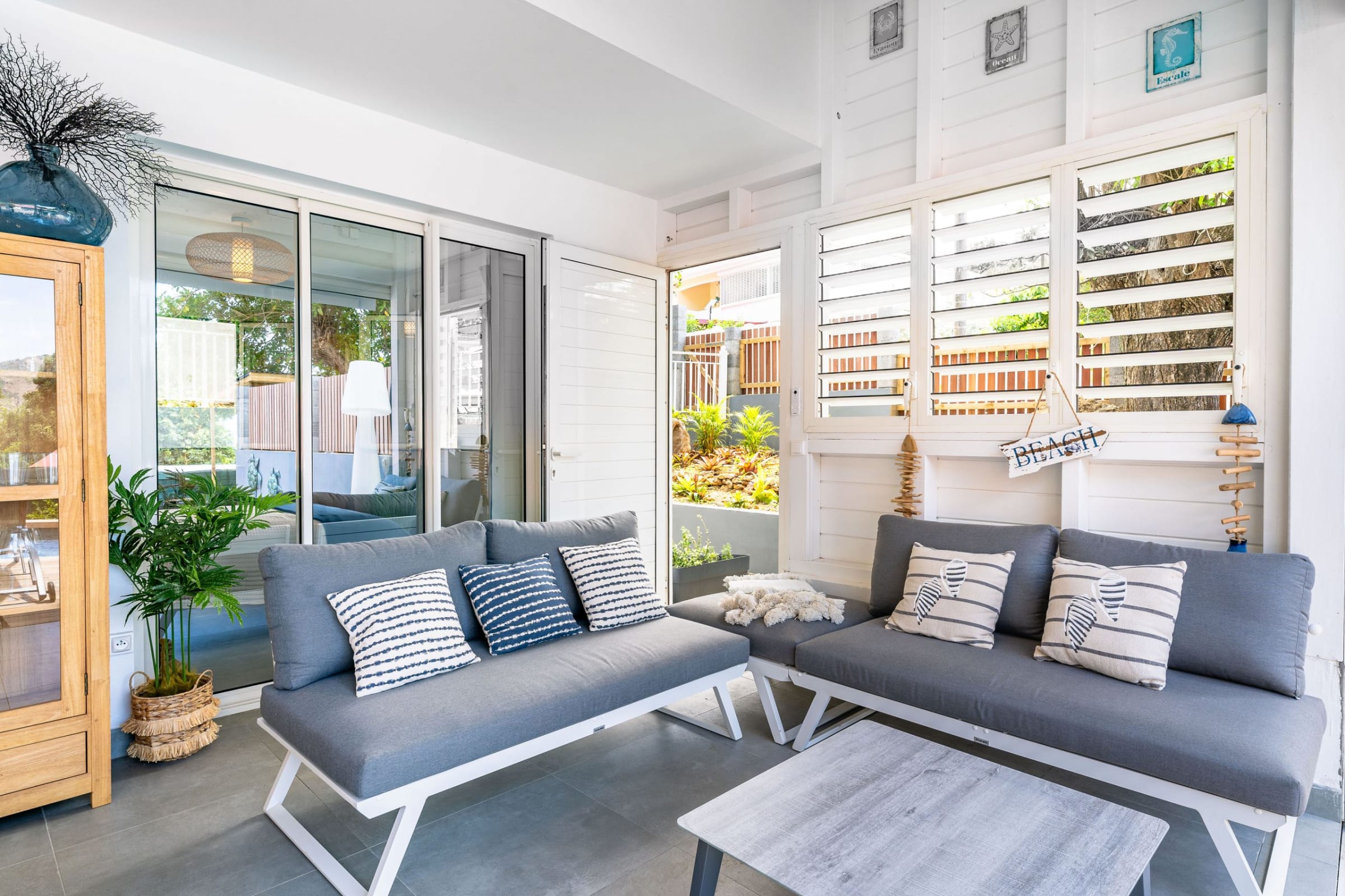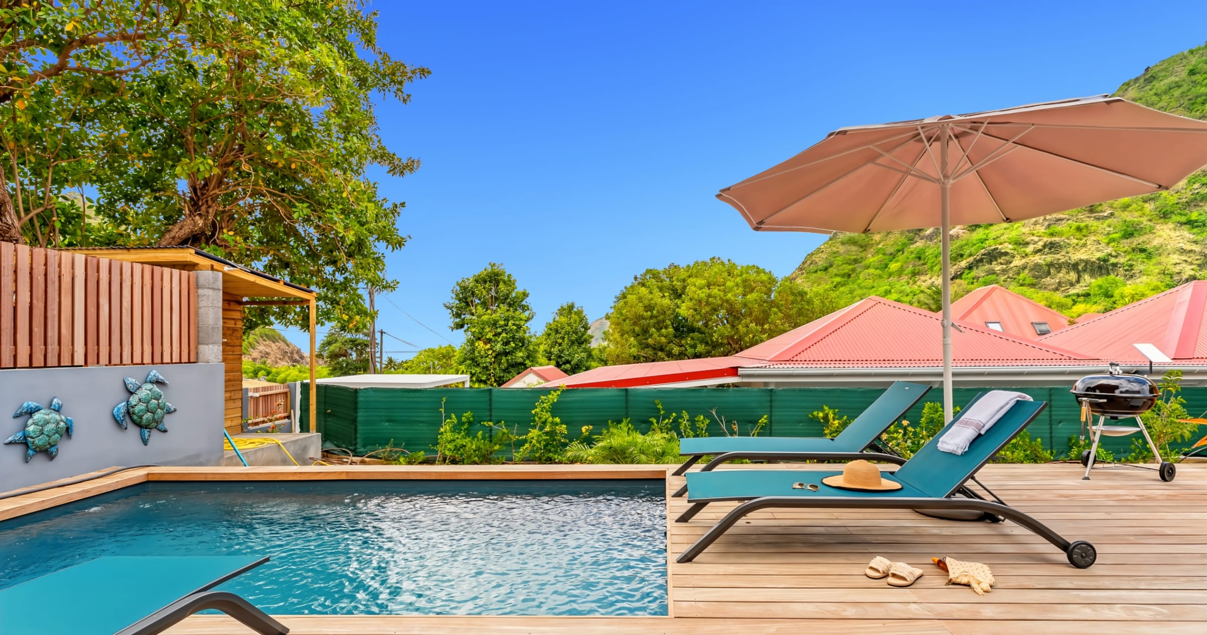 The perfectly equipped kitchen harmoniously combines functionality and pleasure. It gives access to the terrace, where a dining table for eight people awaits you under the blue Caribbean sky. An extension, complete with a swimming pool, deckchairs and a coal barbecue, completes this idyllic setting, perfect for moments of conviviality with family or friends.